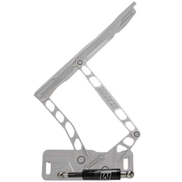 Metal fatigues and springs weaken over time. Just like an engine needs to be freshened, so do hinges. The new line of billet hood hinges from March Performance are packed with features that don’t just look the part, they play it. With our patented (No. 11,002,047) 6-axis adjustment built directly into the hinge, this technology affords the installer the ability to adjust hood gaps without having to remove the hood. In addition to the 6-axis adjustment these hinges feature rock-solid gas struts and sealed bearings that connected to the stylish, precision-machined 6061-T6 billet aluminum bodies and arms. March Hood Hinges are designed to work with all styles of hood whether it be Steel, Fiberglass, Carbon Fiber, or any other aftermarket material. Be sure to select the correct material when placing your order.