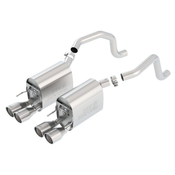 The S-Type II systems use the latest muffler design to eliminate sound frequencies are often associated with resonance or drone. System features 4" polished T-304 stainless steel tips. Borla(r) Cat-Back(tm) & Axle-Back exhaust systems feature patented straight-through and multi-core technology to unleash hidden horsepower. Increased exhaust velocity adds power, driving excitement, fuel economy, and the distinctive Borla(r) Sound of Power respected by motoring enthusiasts everywhere. Each system is built from premium, high-quality T-304 austenitic stainless steel, superior to T-400 series knockoffs (such as 409), to give you the absolute best in performance and durability. Ultra-smooth mandrel bends ensure maximum flow & power, and precision computer numerical control (CNC) manufacturing ensures an accurate fit. Best of all, Borla(r) stands behind every system with a Million-Mile Warranty. Just what you'd expect from the world's most experienced (and most winning) exhaust brand.