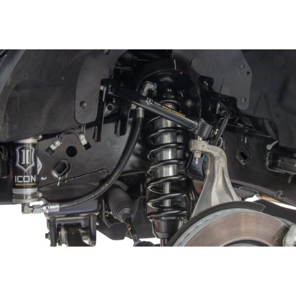 ICON Vehicle Dynamics V.S. Series 2.5” remote reservoir coilover shocks are an incredible upgrade for the front end of the 2014 Ford F150 2WD. ICON’s Vehicle-specific valving provides a sport tuned feel on and off-road while offering 1.75-2.63” of lift height adjustability for use of larger, more aggressive wheel and tire combinations. The larger 2.5” shock body and increased piston area over stock components provides improved damping ability and outstanding ride characteristics across varying types of terrain. Remote reservoirs ensure optimum performance by increasing the duration of consistent damping regardless of situation, keeping the shocks at a cooler operating temperature during heavy use. When paired with ICON rear 2.0 Aluminum Series or 2.5" Series shocks, vehicle control will be balanced front to rear resulting in the best overall driving experience for your F150.