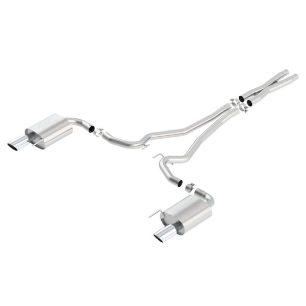 System contains a merge X-Pipe for increased performance and improved sound. This system features the aggressive ATAK(r) sound and 4" bright chrome on T-304 stainless steel tips. Borla(r) Cat-Back(tm) & Axle-Back multi-core technology is designed to unleash hidden horsepower. Increased exhaust velocity adds power, driving excitement, fuel economy, and the distinctive Borla(r) Sound of Power respected by motoring enthusiasts everywhere. Each system is built from premium T-304 stainless steel, superior to T-400 series knockoffs (such as 409), to give you the absolute best in performance and durability. Ultra-smooth mandrel bends ensure maximum flow & power, and precision computer numerical control (CNC) manufacturing ensures an accurate fit. Best of all, Borla(r) stands behind every system with a Million-Mile Warranty. Just what you'd expect from the world's most experienced (and most winning) exhaust brand.