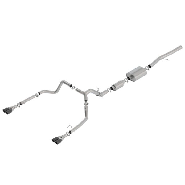 EXCEPT ZR2 & AT4X models. Factory Split Rear Exit vehicles ONLY. This system features a black chrome finish on T-304 stainless steel tips. Using Borla(r) Stainless Steel Polish p# 21461 is NOT recommended with these black chrome tips. We suggest cleaning the tips with hot water and a microfiber cloth. Add Adapter 60706 for Crew Cab with Standard Bed (6' 7") 157" Wheelbase vehicles. Replace the small muffler behind the primary muffler in the Borla(r) "S-Type" system with Polyphonic Harmonizer 60680 to attain the "ATAK(r)" sound level (louder than "S-Type"). Optional "True Dual" Cat-Back(tm) system available, see the Related Parts section. Borla(r) Cat-Back(tm) and Axle-Back exhaust systems feature patented straight-through and multi-core technology designed to unleash hidden horsepower. Increased exhaust velocity adds power, driving excitement, fuel economy, and the distinctive Borla(r) Sound of Power respected by motoring enthusiasts everywhere. Each system is built from premium T-304 stainless steel, superior to T-400 series knockoffs (such as 409), to give you the absolute best in performance and durability. Ultra-smooth mandrel bends ensure maximum flow & power, and precision computer numerical control (CNC) manufacturing ensures an accurate fit. Best of all, Borla(r) stands behind every system with a Million-Mile Warranty. Just what you'd expect from the world's most experienced (and most winning) exhaust brand.