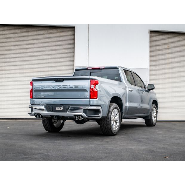 EXCEPT ZR2 & AT4X models. Factory Split Rear Exit ONLY. This system features bright chrome on T-304 stainless steel tips. Add Adapter 60706 for Crew Cab with Standard Bed (6' 7") 157" Wheelbase vehicles. Borla(r) Cat-Back(tm) & Axle-Back exhaust systems feature patented straight-through and multi-core technology designed to unleash hidden horsepower. Increased exhaust velocity adds power, driving excitement, fuel economy, and the distinctive Borla(r) Sound of Power respected by motoring enthusiasts everywhere. Each system is built from premium T-304 stainless steel, superior to T-400 series knockoffs (such as 409), to give you the absolute best in performance and durability. Ultra-smooth mandrel bends ensure maximum flow & power, and precision computer numerical control (CNC) manufacturing ensures an accurate fit. Best of all, Borla(r) stands behind every system with a Million-Mile Warranty. Just what you'd expect from the world's most experienced (and most winning) exhaust brand.