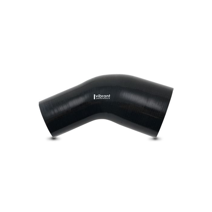 Vibrant Performance Aramid Reinforced Silicone 45 Degrees Transition Elbows feature High Temperature Resistant Aramid Reinforcement Fabric between each layer of silicone which allows for an impressive Operating Temperature Range of -75 Degrees F to 392 Degrees F (-60 Degrees C to 200 Degrees C). These elbows are intended for use in applications where pressurized tubing and connection points require a tight radius bend and size transition to accommodate the installation of piping in limited space. Not suitable for use with Oil/Fuel.