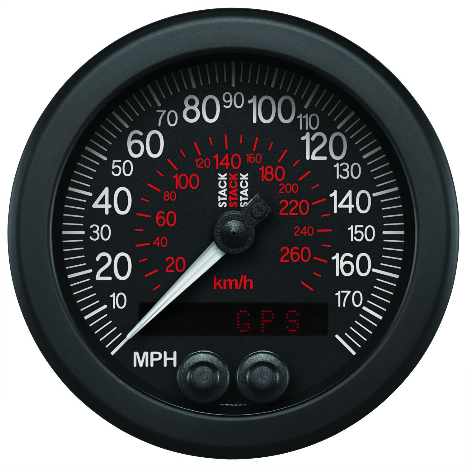 Stack Professional GPS Speedometers utilize the latest satellite signal technology to simplify instrument installation and accurately register vehicle speed. The included high-speed (10 Hz) omnidirectional micro antenna offers exceptional mounting versatility and eliminates the need for recalibrations associated with conventional speedometers when making adjustments to vehicle gearing or wheel circumference. Inboard configurable LED digital display indicates odometer, trip odometer, time/date, position coordinates, heading data, compass, peak speed recall, and performance meter acceleration and braking tests.