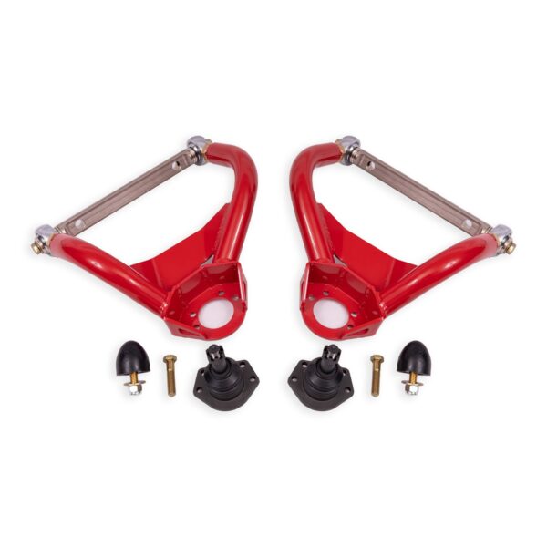 Improve handling and front-end stability on your 1964-1972 A-Body with a set of Upper A-Arms from BMR Suspension! Factory A-Arms and bushings can cause deflection, resulting in changes in alignment and reduced performance. BMRs Adjustable Upper A-Arms (AAU403) greatly improve steering feel and response and are designed for street performance, drag racing, and handling applications. When performance is a must, rely on BMR Suspension!