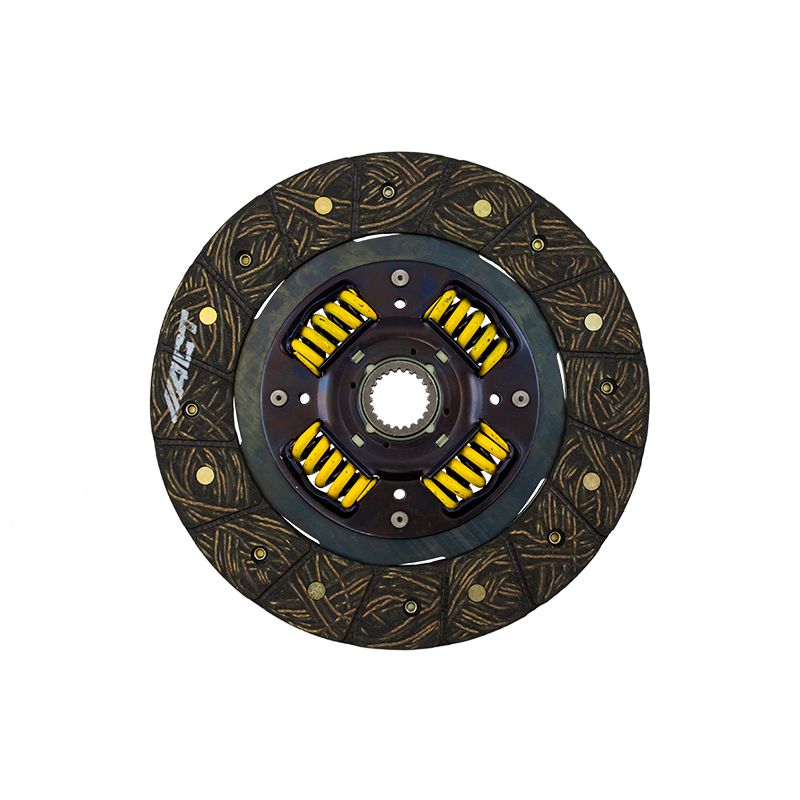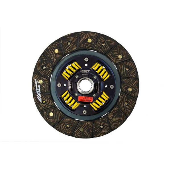 3000818 is a performance street disc and the most popular disc purchased. It features premium organic materials with high copper content for better heat transfer. Performance street discs allow for quicker shifting and smooth engagement. These discs feature a reduced marcel for faster shift action to complement ACT pressure plates. ACT spring-centered assemblies use bushings and cone springs similar to factory clutch discs. This creates frictional dampening, which improves clutch life and reduces noise. Quiet operation with increased strength and reliability.