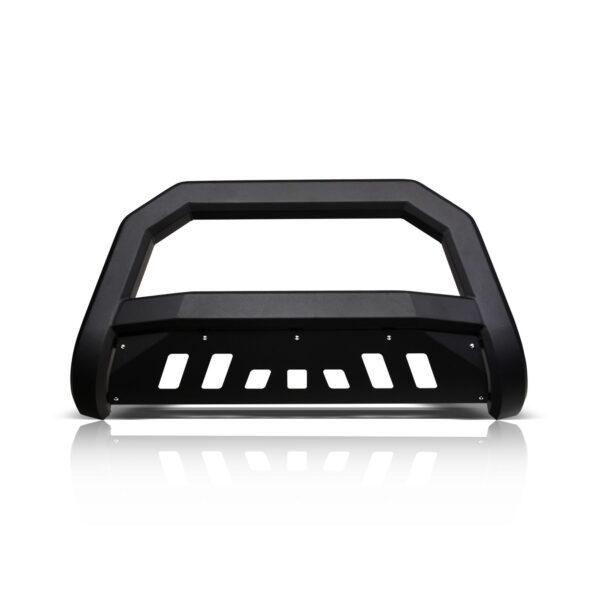 Armordillo AR Series Bull Bar, If you're looking to protect the front end of your rig against the elements and impact of minor collisions without sacrificing the look of your new stylish front grille, the AR series bull bar with its aggressive angular design is just the thing you need. Unlike regular tubular bull bars, Armordillo AR series bull bars will not hide your front grille or a large portion of your front bumper, while keeping the front-end protection at a high level. Plus, the mesh styled skid plate doesn't restrict airflow to the radiator and engine preventing its overheating. Arm your off-road beast with Armordillo, an industry-leading manufacturer of top-of-the-line truck accessories and parts. Years of ingenious engineering and passion for the world's toughest trucks has been poured out into providing hardcore off-road products designed to turn your beefy companion into the embodiment of sleekness, edginess, and aggression. Armordillo offers bull bars, step bars, fender flares, truck bed rails, trailer hitches and some of its unique products. Pre-Runner bumper guards, AR drop steps, lockers, and bull bars. You can count on Armordillo to bring you impeccably strong and durable parts combining brutal appeal with high-end elegance. The brand's bull bars, grilles, fender flares and side step bars are a sure way to instantly give your off-road warrior a more sharp, mean look along with unmatched comfort and protection against the rage of the trails. So, if you are looking to improve your vehicle's stance and fortify its defenses to own the dust with confidence, Armordillo is the answer to all your needs.