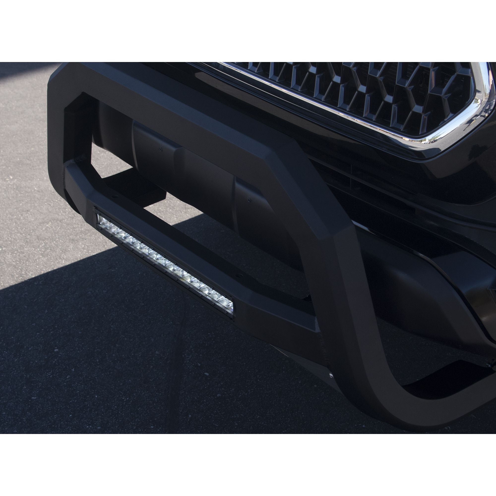 Armordillo AR Series Bull Bar, If you're looking to protect the front end of your rig against the elements and impact of minor collisions without sacrificing the look of your new stylish front grille, the AR series bull bar with its aggressive angular design is just the thing you need. Unlike regular tubular bull bars, Armordillo AR series bull bars will not hide your front grille or a large portion of your front bumper, while keeping the front-end protection at a high level. Plus, the mesh styled skid plate doesn't restrict airflow to the radiator and engine preventing its overheating. Arm your off-road beast with Armordillo, an industry-leading manufacturer of top-of-the-line truck accessories and parts. Years of ingenious engineering and passion for the world's toughest trucks has been poured out into providing hardcore off-road products designed to turn your beefy companion into the embodiment of sleekness, edginess, and aggression. Armordillo offers bull bars, step bars, fender flares, truck bed rails, trailer hitches and some of its unique products. Pre-Runner bumper guards, AR drop steps, lockers, and bull bars. You can count on Armordillo to bring you impeccably strong and durable parts combining brutal appeal with high-end elegance. The brand's bull bars, grilles, fender flares and side step bars are a sure way to instantly give your off-road warrior a more sharp, mean look along with unmatched comfort and protection against the rage of the trails. So, if you are looking to improve your vehicle's stance and fortify its defenses to own the dust with confidence, Armordillo is the answer to all your needs.