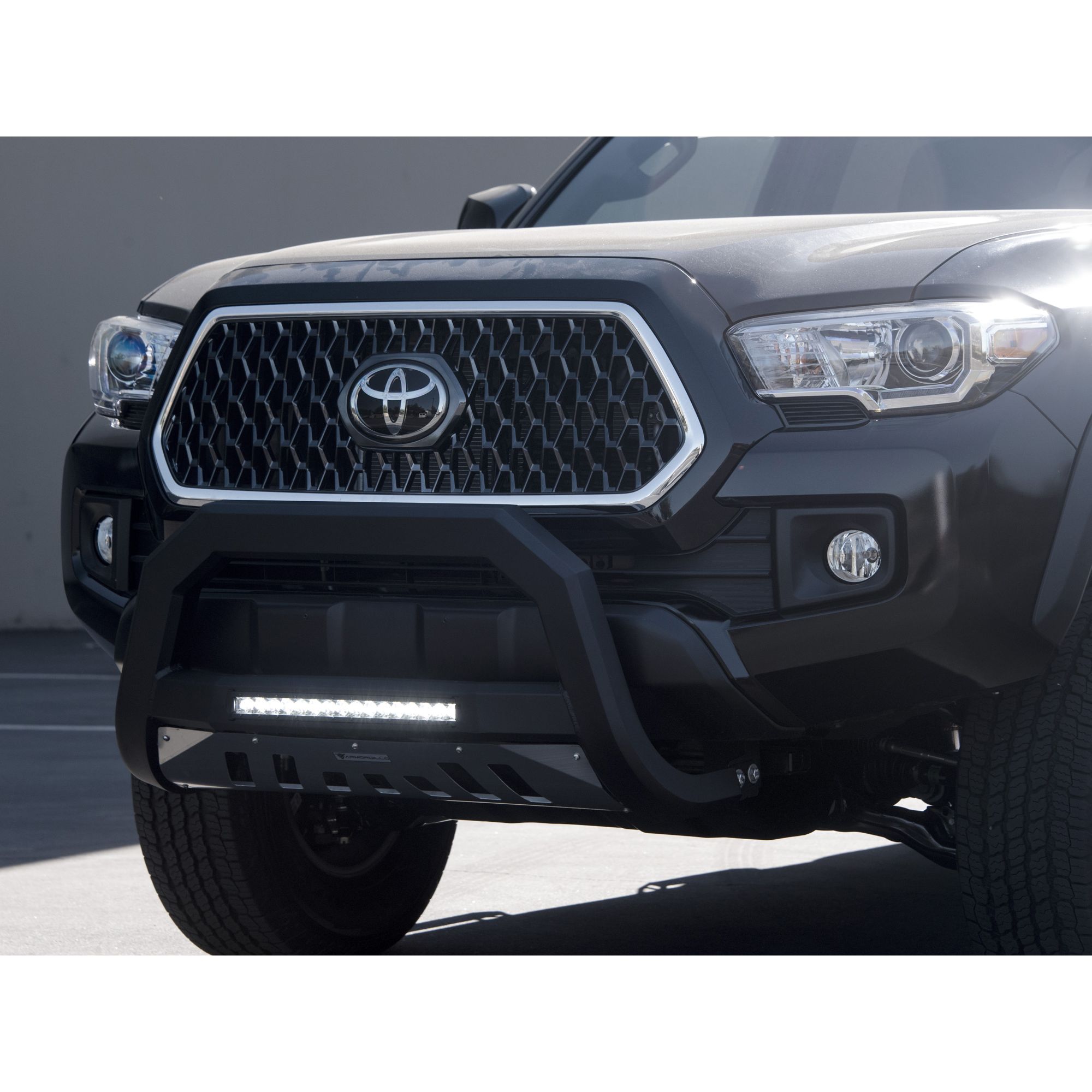 Armordillo AR Series Bull Bar, If you're looking to protect the front end of your rig against the elements and impact of minor collisions without sacrificing the look of your new stylish front grille, the AR series bull bar with its aggressive angular design is just the thing you need. Unlike regular tubular bull bars, Armordillo AR series bull bars will not hide your front grille or a large portion of your front bumper, while keeping the front-end protection at a high level. Plus, the mesh styled skid plate doesn't restrict airflow to the radiator and engine preventing its overheating. Arm your off-road beast with Armordillo, an industry-leading manufacturer of top-of-the-line truck accessories and parts. Years of ingenious engineering and passion for the world's toughest trucks has been poured out into providing hardcore off-road products designed to turn your beefy companion into the embodiment of sleekness, edginess, and aggression. Armordillo offers bull bars, step bars, fender flares, truck bed rails, trailer hitches and some of its unique products. Pre-Runner bumper guards, AR drop steps, lockers, and bull bars. You can count on Armordillo to bring you impeccably strong and durable parts combining brutal appeal with high-end elegance. The brand's bull bars, grilles, fender flares and side step bars are a sure way to instantly give your off-road warrior a more sharp, mean look along with unmatched comfort and protection against the rage of the trails. So, if you are looking to improve your vehicle's stance and fortify its defenses to own the dust with confidence, Armordillo is the answer to all your needs.