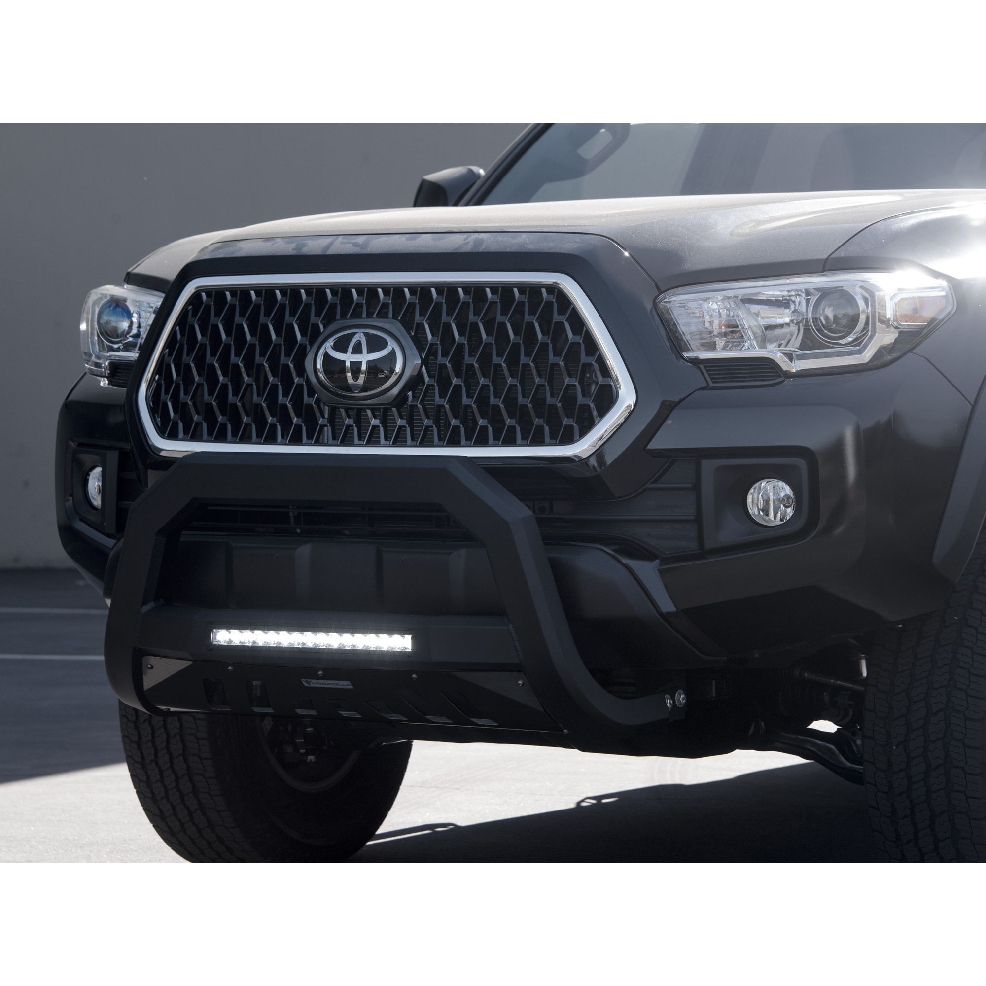 Armordillo AR Series Bull Bar, If you're looking to protect the front end of your rig against the elements and impact of minor collisions without sacrificing the look of your new stylish front grille, the AR series bull bar with its aggressive angular design is just the thing you need. Unlike regular tubular bull bars, Armordillo AR series bull bars will not hide your front grille or a large portion of your front bumper, while keeping the front-end protection at a high level. Plus, the mesh styled skid plate doesn't restrict airflow to the radiator and engine preventing its overheating. Arm your off-road beast with Armordillo, an industry-leading manufacturer of top-of-the-line truck accessories and parts. Years of ingenious engineering and passion for the world's toughest trucks has been poured out into providing hardcore off-road products designed to turn your beefy companion into the embodiment of sleekness, edginess, and aggression. Armordillo offers bull bars, step bars, fender flares, truck bed rails, trailer hitches and some of its unique products. Pre-Runner bumper guards, AR drop steps, lockers, and bull bars. You can count on Armordillo to bring you impeccably strong and durable parts combining brutal appeal with high-end elegance. The brand's bull bars, grilles, fender flares and side step bars are a sure way to instantly give your off-road warrior a more sharp, mean look along with unmatched comfort and protection against the rage of the trails. So, if you are looking to improve your vehicle's stance and fortify its defenses to own the dust with confidence, Armordillo is the answer to all your needs.
