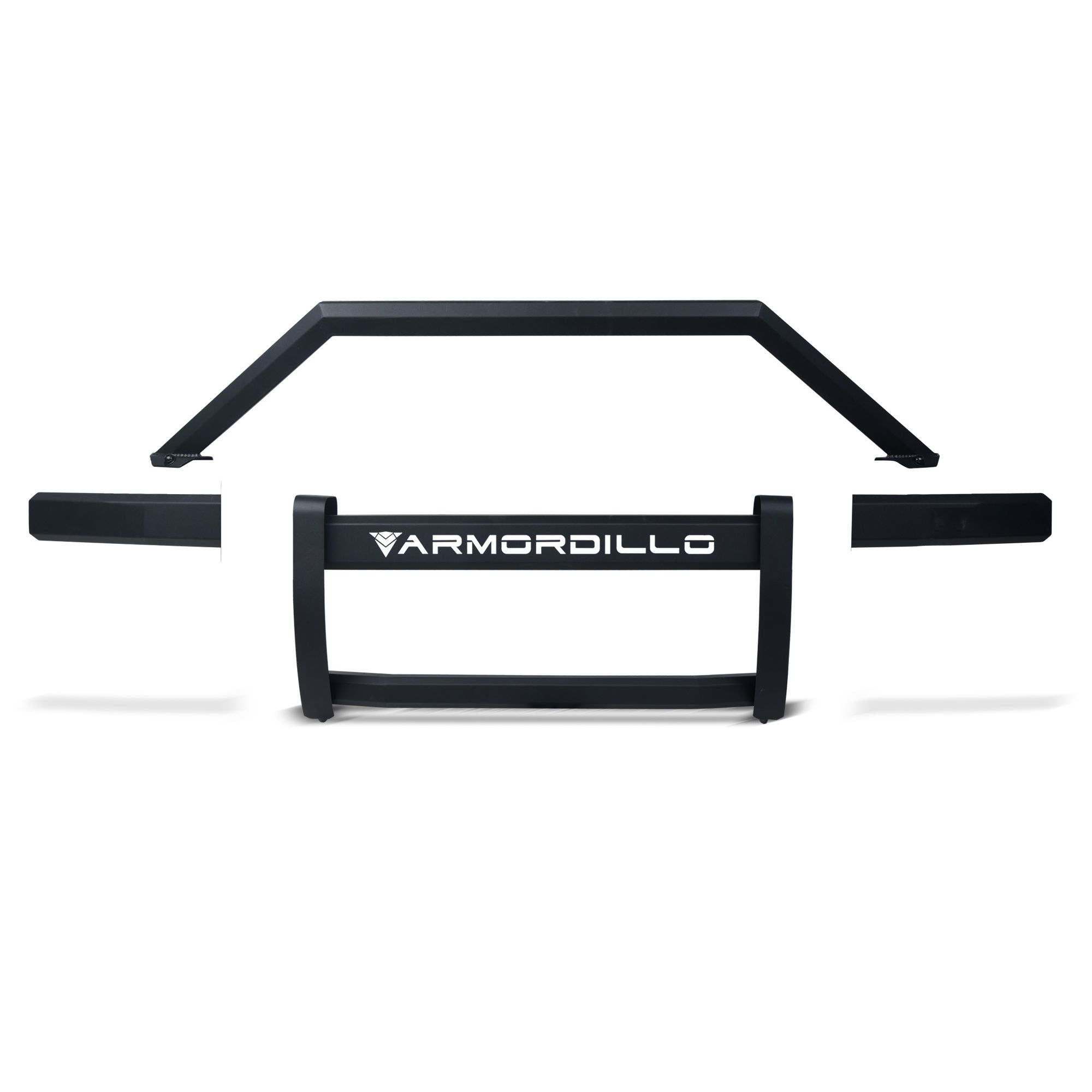 AR2 Pre-Runner Guard is the front-end shield against minor collisions, branches, rocks, and wayward deer. It is composed of a push bar body with 3.5" outer tubes to protect your headlight and a cross bar to protect your grille to ensure reliable protection for your front end. It’s modular system allows for quick access to your headlights for troubleshooting and maintenance. In addition, the grille guard features AUX light mount holes, making it easy to add a set of auxiliary lights to increase illumination and visibility. The AR2 Pre-Runner Guard is powder coated to protect from rust and corrosion so you can enjoy the brand-new look of your product for many years to come. Arm your off-road beast with Armordillo®, an industry-leading manufacturer of top-of-the-line truck accessories and parts. Years of ingenious engineering and passion for the world’s toughest trucks has been poured into providing hardcore off-road products designed to turn your beefy companion into the embodiment of sleekness, edginess, and aggression. The brand offers bull bars, step bars, fender flares, truck bed rails, trailer hitches and some of its unique products – Pre-Runner bumper guards, AR drop steps, lockers, and bull bars. You can count on Armordillo to bring you impeccably strong and durable parts combining brutal appeal with high-end elegance. The brand’s bull bars, grilles, fender flares and side step bars are a sure way to instantly give your off-road warrior a more sharp, mean look along with unmatched comfort and protection against the rage of the trails. So, if you are looking to improve your vehicle’s stance and fortify its defenses to own the dust with confidence, Armordillo is the answer to all your needs.