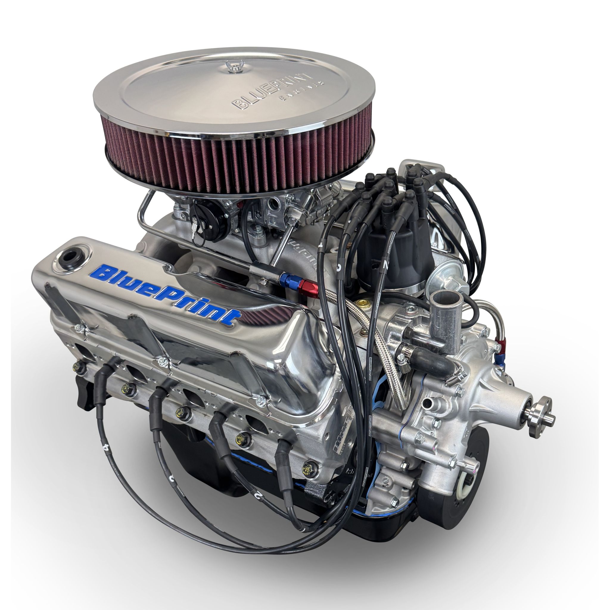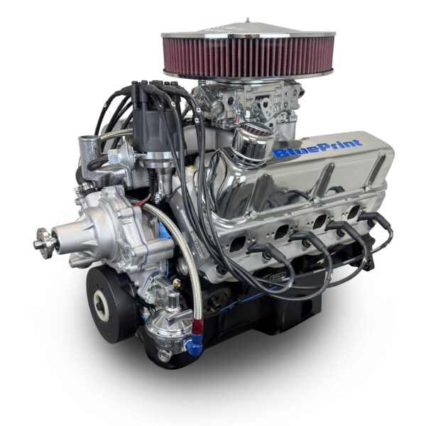 1pc Rear Seal, Forged Pistons, Cast Crank, Externally Balanced Front & Rear 28oz, Aluminum Heads, Roller Cam, Rear Sump Oil Pan, Timing Cover, Dual Plane Intake, Carb, Fuel Pump, Ready Run Distributor, Spark Plugs & Wires, Air Cleaner, Standard Rotation Water Pump