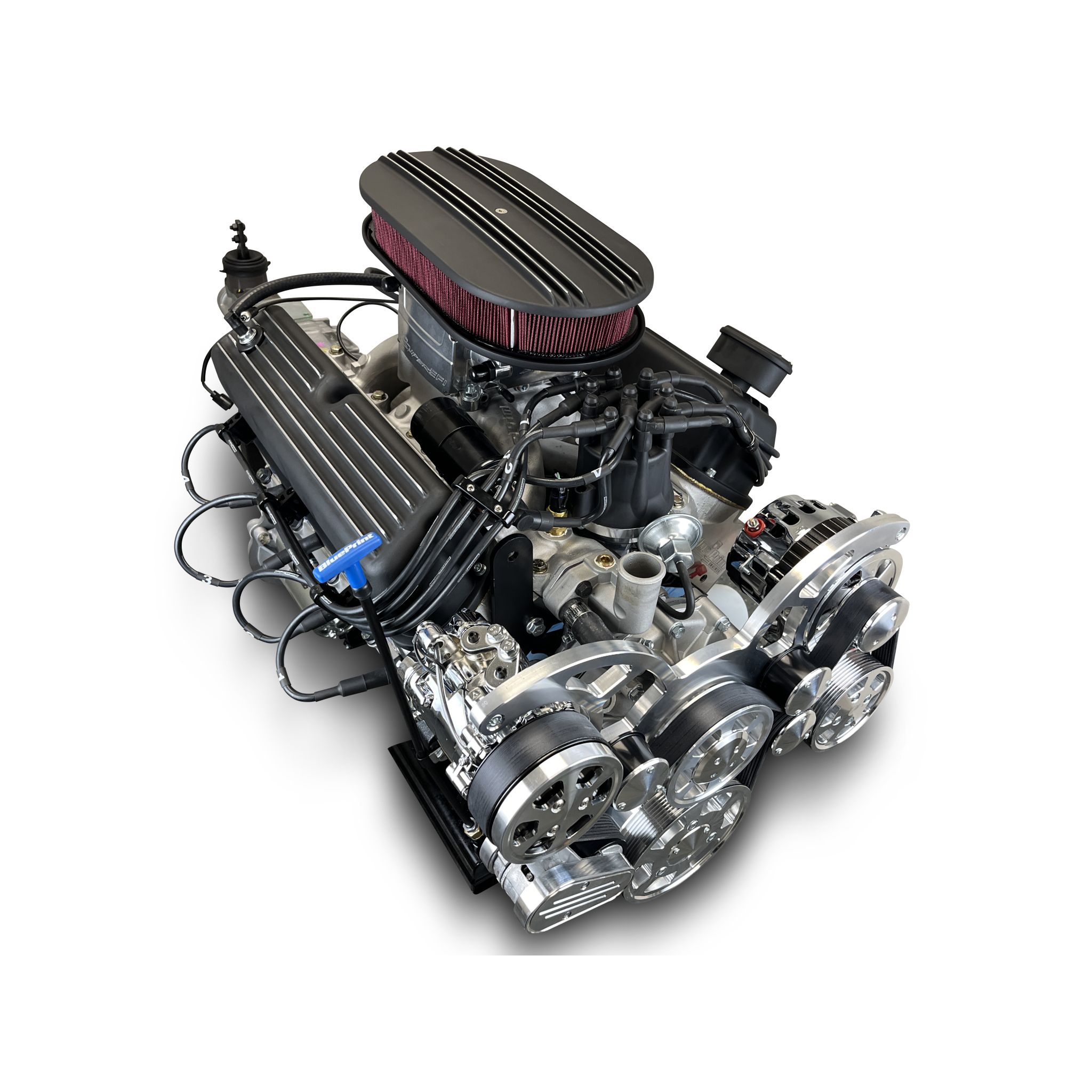 Engine/Trans Package, Roller Cam, Forged Pistons, 1pc Rear Seal, Externally Balanced to 28oz Front & Rear, Dual Plane Intake, EFI, Ready Run Distributor, Ignition Coil, Distributor, Water Pump, Oil Pan, Aluminum Valve Covers & Air Cleaner, Timing Cover, Polished Pulley Kit, TKX Manual Transmission