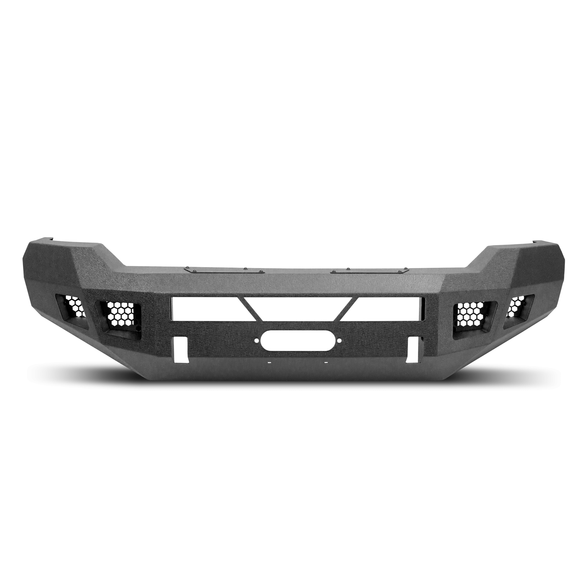 Introducing the ultimate heavy-duty front winch bumper, engineered for strength and reliability. Crafted from a robust 1/8'' steel plate with a 1/4" winch plate, this bumper is designed to handle the toughest recovery operations with a 12,000lb winch capacity. It seamlessly integrates with your vehicle's OE sensors, ensuring optimal performance without compromising functionality. Installation is a breeze with its easy bolt-on design, and it includes a convenient license plate bracket. Illuminate your path with the versatile light fitment options, accommodating a 30'' dual row LED in the middle and 4 cube LEDs for superior visibility. Perfect for off-road enthusiasts and heavy-duty users, this bumper is your go-to solution for durability and performance.
