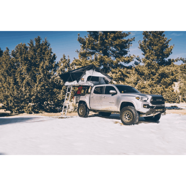 Inside, you'll find a 2.4" high-density foam mattress with a removable and washable cover for added comfort. The 7'5" telescoping aluminum ladder provides easy access, and the hinges and hardware are made from marine-grade 304 stainless steel. The floor is constructed from aluminum honeycomb with insulation, and the zippers are SBS for reliable performance. The driving cover is 1200PVC coated and fully waterproofed.