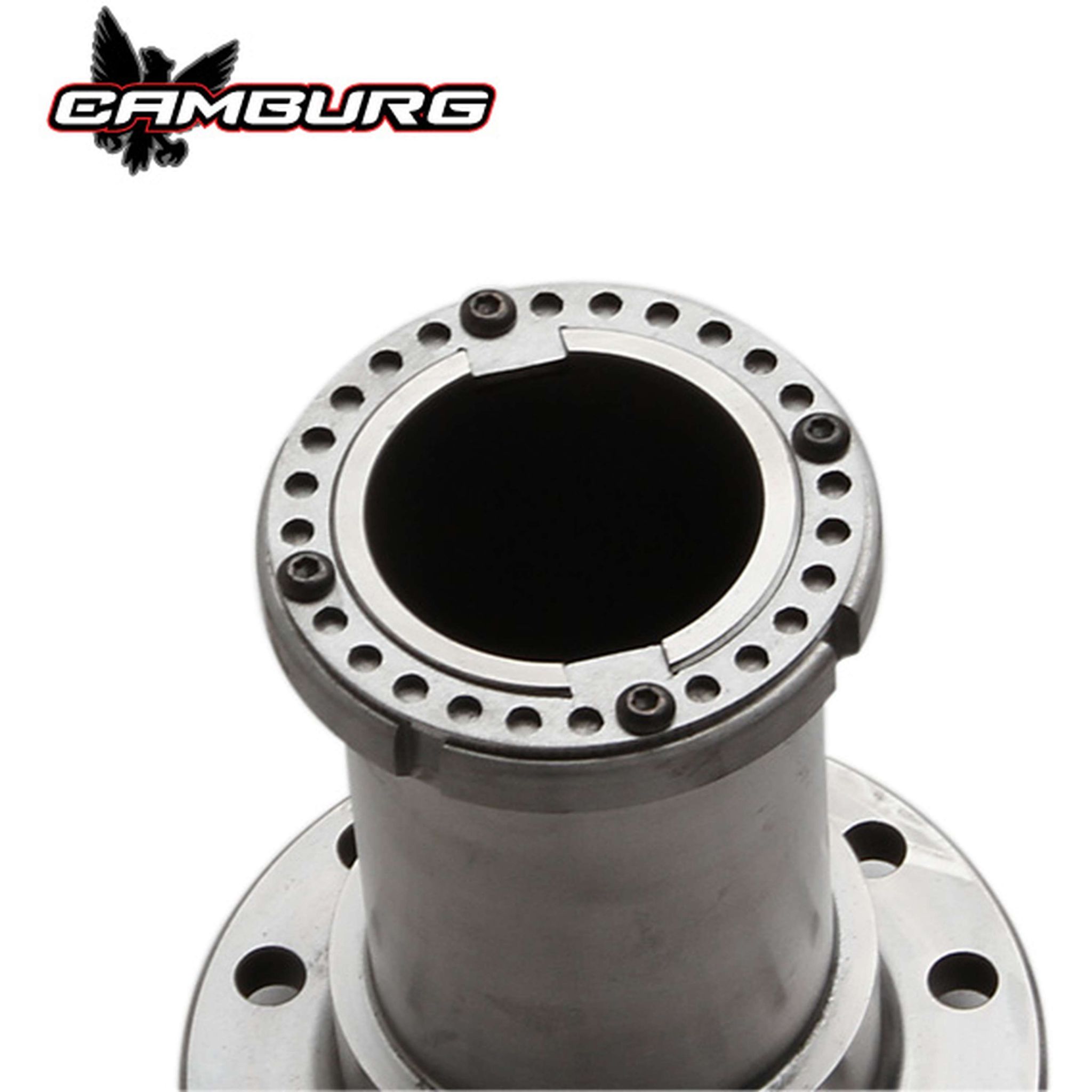 Our Camburg 2.25 full-float rear hubs are a great lower cost option for PreRunners and lighter weight race trucks. They are available in 5 on 5.5" and 6 on 5.5" bolt patterns with 35 or 40 spline drive plates. Our 2.25 lightweight hub design has a wider bearing spread compared to 2.5 GN hubs for increased strength and longevity. We also use larger 7" round material for the hub body for increased strength around the wheel stud area. We CNC machine the hubs in-house from 6061-T6 aluminum, then type II anodize them matte black. We use large 5/8-18 large wheel studs with our tapered a hub-centric center caps that help get the wheel on when you’re out on the race course where time is critical. We supply them with high quality Timken bearings and races along with SKF seals that utilize our bolt-on stainless retainers for added protection and retention. Our drive plates are machined from 4340 chromoly, broached, heat-treated, stress relieved and nickel plated gray for corrosion resistance. Our red brake rotor adapters round out the package with all the necessary hardware, O-rings, etc. and bearing preload spacers. Simple things like drilled head bolts to safety wire the brake rotor adapters on show the attention to detail with our hub kits that you don’t get from other companies. To complete this setup you’ll need our weld-in spindle snouts and our custom spindle nut wrench. Wheels must have 4.25" center-bore and machined for 5/8" wheel studs.