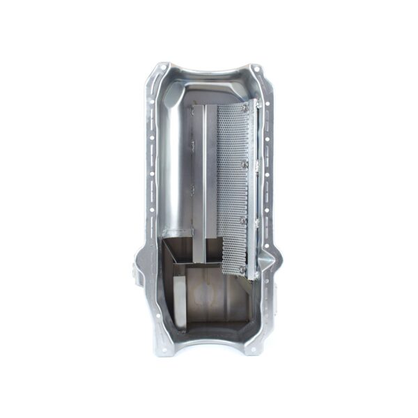 This road race pan is for '85-up SBC blocks in '82-'92 F-Bodies. It has a 7-1/2" deep, 12" wide, 8-1/4" long sump for a 6 qt. system capacity. Will work with stock starter. This pan requires one of our pickups.
