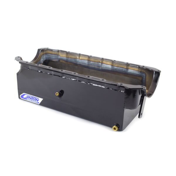 This reverse mount marine pan is for MK IV Big Block Chevys. Pan is 8? deep and holds 9 quarts of oil. It is designed with a front of engine pickup compartment with double trap doors for oil control in reverse mount engine applications. This pan requires our 18-311 pickup.