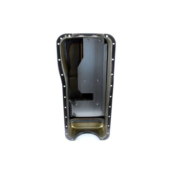 This stock depth 7-3/4" deep full length sump holds 8 quarts of oil for greater oil capacity. Designed for applications with the pickup at the flywheel end of the engine. This pan requires our 18-761 pickup.