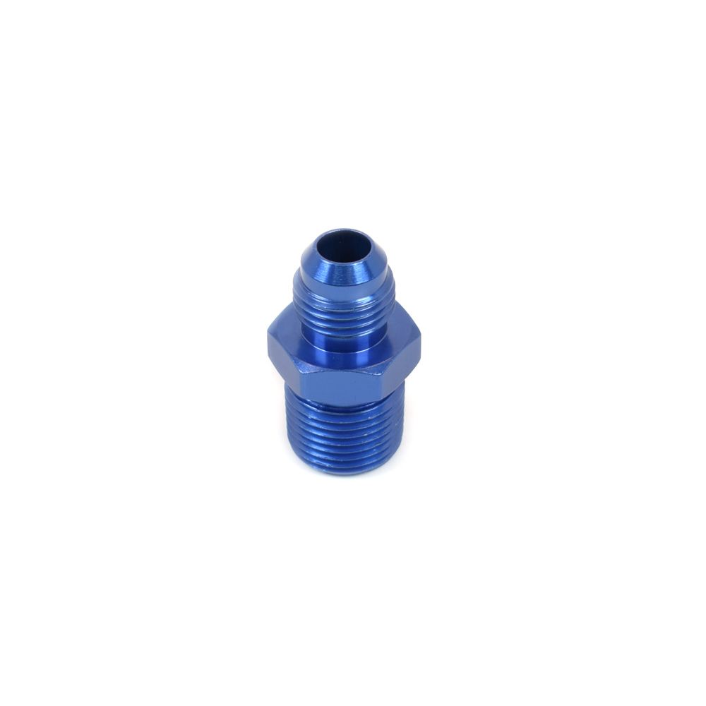 This 3/8" N.P.T. to -6 AN, alum. adapter fitting can be used with our remote oil filter adapters, remote canisters, inline filters and power steering tanks. N.P.T. thread to AN 37 deg. flare.