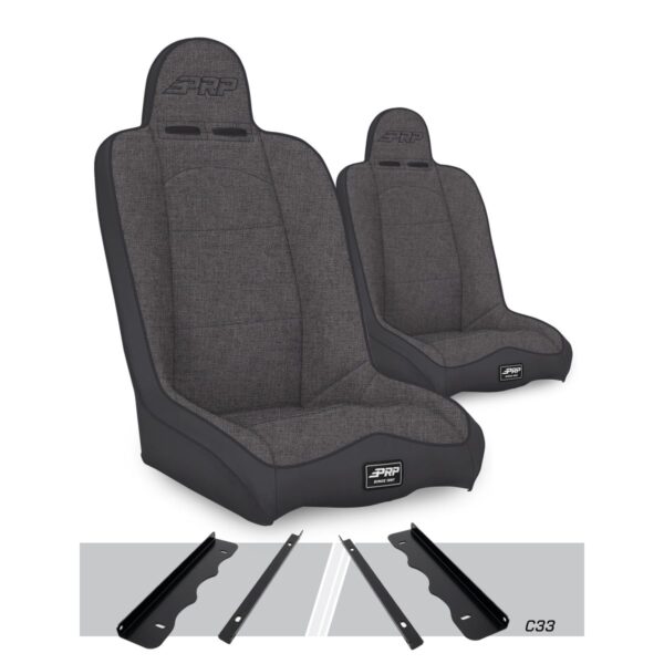 Add more comfort and containment to your Jeep Cherokee XJ. While having a lot of containment in off-road racing seats is nice when you’re actually off-road, it really gets old if your constantly climbing in and out on trails or driving around town. The Daily Driver Suspension Seat has 5” of containment which will hold you in on the trail but still make it easy to climb in and out of your Jeep. The vinyl-coated nylon suspension liner and dual-density foam decrease the impact on the body, reducing the fatigue you feel after a long day in the dirt or rock crawling. Features Tweed Center, Vinyl Back and Vinyl Piping. This kit comes with 2x Daily Driver Seats, and the adapter mounts to fit into your 1995-2001 Jeep Cherokee XJ. The adapter mounts bolt to your OEM sliders, allowing you to install the seat while retaining the ability to slide back and forth. Seat Dimensions: 31? Tall x 21? Wide x 26? Deep Fitment 1995-2001 Jeep Cherokee XJ Note: *Seat height is typically 2" higher than stock seats. Made for Off-Road use only with 4pt or 5pt off-road harnesses. Passenger Seats may not retain the ability to tumble. 3pt Seat Belts will need a Seat Belt Extension/Angle Bracket.