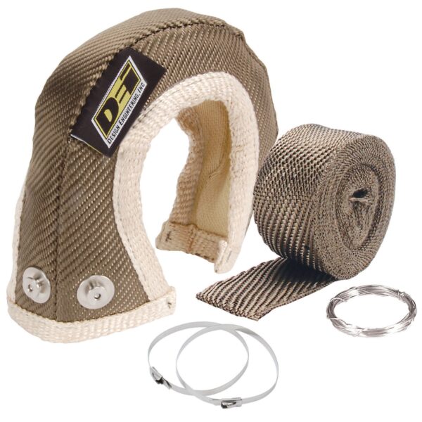 Includes: One Titanium GT22 Turbo Shield, one 15 foot roll of 2 inch wide titanium exhaust wrap, stainless steel locking ties, and stainless steel soft tempter wire.