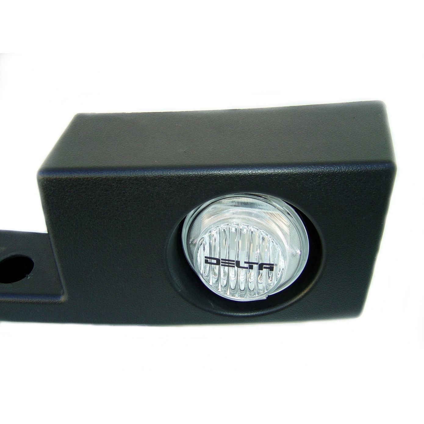 Delta designed 46H Series bumper fascia light systems are universal. They replace under powered factory fascia lights that mount to 4. 5" diameter bumper openings. These wide beam fog lights provide an awesome boost to your peripheral visibility. Great for narrow mountain roads and trails. Also great for heavy fog and adverse weather. Precision prismatic lenses illuminate wider than headlights for greatly increased visibility. The High-tempered glass lenses can withstand extreme temperatures. Hermetic waterproof design provides protection from the elements. Micro-adjustment leveling mechanism allows for precise aiming regardless of vehicle ride height. The system runs on its own OEM harness and comes complete with switch and relay. Completely serviceable, replacement parts available. Some minor modification of the vehicle bucket may be necessary. LEDs are 1,500Lm at 6,000 Kelvin. 4. 5" diameter by 4" depth. Made in USA. Fits- Hummer H2 and H3, Camaro, F-150 and many others
