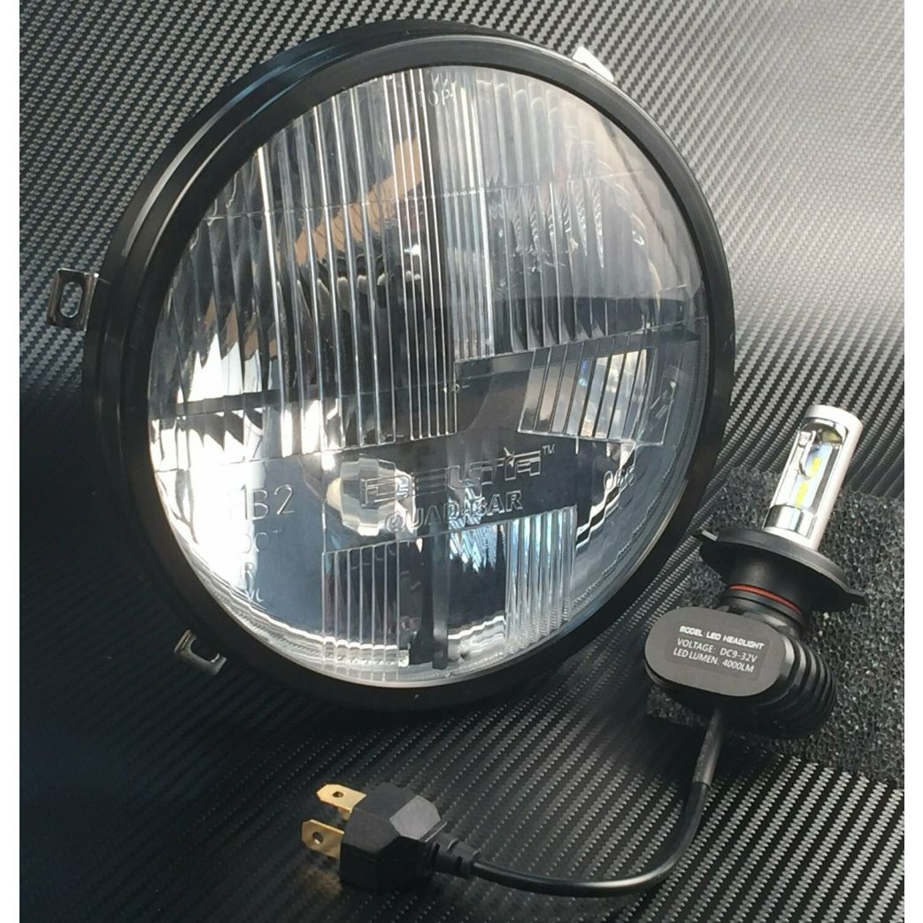 2 (ea) Headlight Assemblies, 2 (ea) H4 LEDs (4,000LM 25W 2 Amp), 2 (ea) Silicone Boots, 2 (ea) Amber LED City Lights, 2 (ea) H4/ H13 Adapters. May fit other vehicles that use H4/ H6024/ 9003 or H13 Harness.