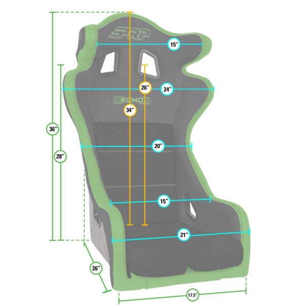 The Echo composite seat mixes style and comfort, with racing functionality. The seat is built with off-road in mind, with thick dual-density foam all around, and built in lumbar support for added comfort. The large harness slots on the back allow you to fit the harness, and a fresh air hose through at the same time. Wrap around head containment prevents the drivers head from jarring side to side on impact. The Echo is slightly shorter than our Alpha Composite seats, allowing it to fit into smaller interiors (such as Trophy Lite trucks). FIA 8855-1999 Rated for Racing Applications. Fits Drivers with up to size 40" waist comfortably. Requires PRP composite seat mounts to install. The Echo is also customizable. With over 60+ different colors and materials to choose from. Design the perfect look for your ride! Customizable! Choose from 60+ options of colors and textures—including our new Sport Mesh for added breathability Wrap around Head Containment prevents the drivers head from rattling on impact Thicker, higher density foam all around for added comfort Higher lateral containment keeps your legs locked in Larger shoulder harness slots allow room for fresh air hose Angled lap belt slots provides the proper angle to install lap belts Fits Drivers with up to size 40" waist comfortably. FIA Rated 8855-1999 for Racing