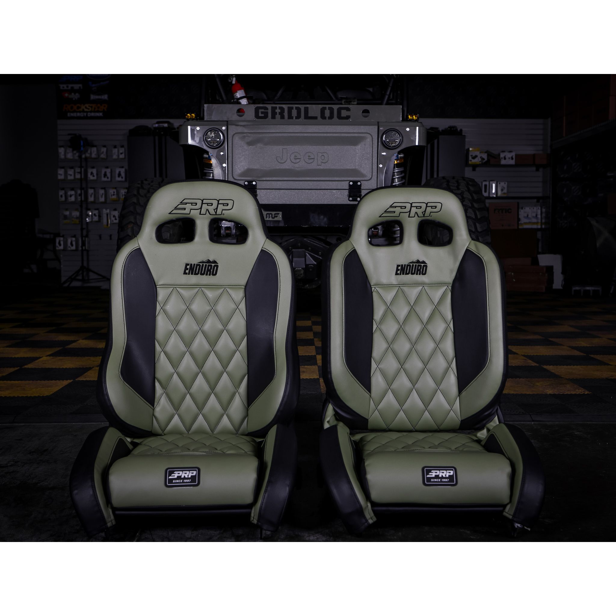 Getting out there and staying in your seat has never been easier or more comfortable than with the all new EnduroTrek! The EnduroTrek Reclining Suspension Seat features a redesigned back for greater containment at the torso. Medium bolsters at your sides keep you supported by holding your upper body tight through the rough stuff, while the upper section of the back opens up at the top, making it more comfortable for larger riders or those with broad shoulders. The seat bottom has low side bolsters for ease of entry and exit. The EnduroTrek Reclining Suspension Seat is a great seat if you do a mix of off-roading and grocery shopping! A removable, dual-layered seat cushion means the EnduroTrek Reclining Suspension Seat offers better leg support and extended comfort off-road. The vinyl-coated nylon suspension liner and dual-density foam decrease the impact on the body and reduce body fatigue after a long day in the dirt or rock crawling. The EnduroTrek reclines completely and inclines enough to allow access to the rear seats. The seat features Tweed Center, Vinyl Back and Vinyl Piping. This kit comes with 2x EnduroTrek Seats, and the adapter mounts to fit into your Jeep Wrangler TJ (1997-2002). The adapter mounts bolt to your OEM sliders, allowing you to install the seat while retaining the ability to slide back and forth. Seat Dimensions: 33? Tall x 22? Wide x 26? Deep Fitment Jeep Wrangler TJ (1997-2002) Note: *Seat height is typically 1-2" higher than stock seats. Made for Off-Road use only with 4pt or 5pt off-road harnesses. Passenger Seats may not retain the ability to tumble. 3pt Seat Belts will need a Seat Belt Extension/Angle Bracket.