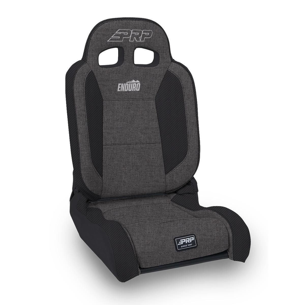 Add comfort and containment to your Jeep, Truck, or Buggy with the EnduroDaily Reclining Suspension Seat from the Enduro Elite Series, the newest line of Reclining Suspension Seats from PRP. Featuring modern styling and a dual slot headrest for harnesses, the EnduroDaily is designed to replace your stock seats in a Jeep Wrangler, Jeep XJ, Ford Ranger, Trucks, or Buggy for increased enjoyment, comfort, and containment off-road. The EnduroDaily Reclining Suspension Seat features Low Bolsters on the Back and Bottom offering a little more containment than most stock seats, but are still quick and easy to get in and out of. This seat is great if you use your vehicle as a daily driver most of the time, with occasional trips off-road. A removable, dual-layered seat cushion means the EnduroDaily offers better leg support and extended comfort. The vinyl-coated nylon suspension liner and dual-density foam decrease the impact on the body and reduce body fatigue after a long day on the road or while exploring off-road. The EnduroDaily reclines completely and inclines enough to allow access to the rear seats. The bottom tabs easily bolt to PRP’s series of mounts built for Jeeps, Broncos, Ford Rangers, and more. The seat features a Tweed Center with Vinyl Back and Band. Available in several different color combinations.