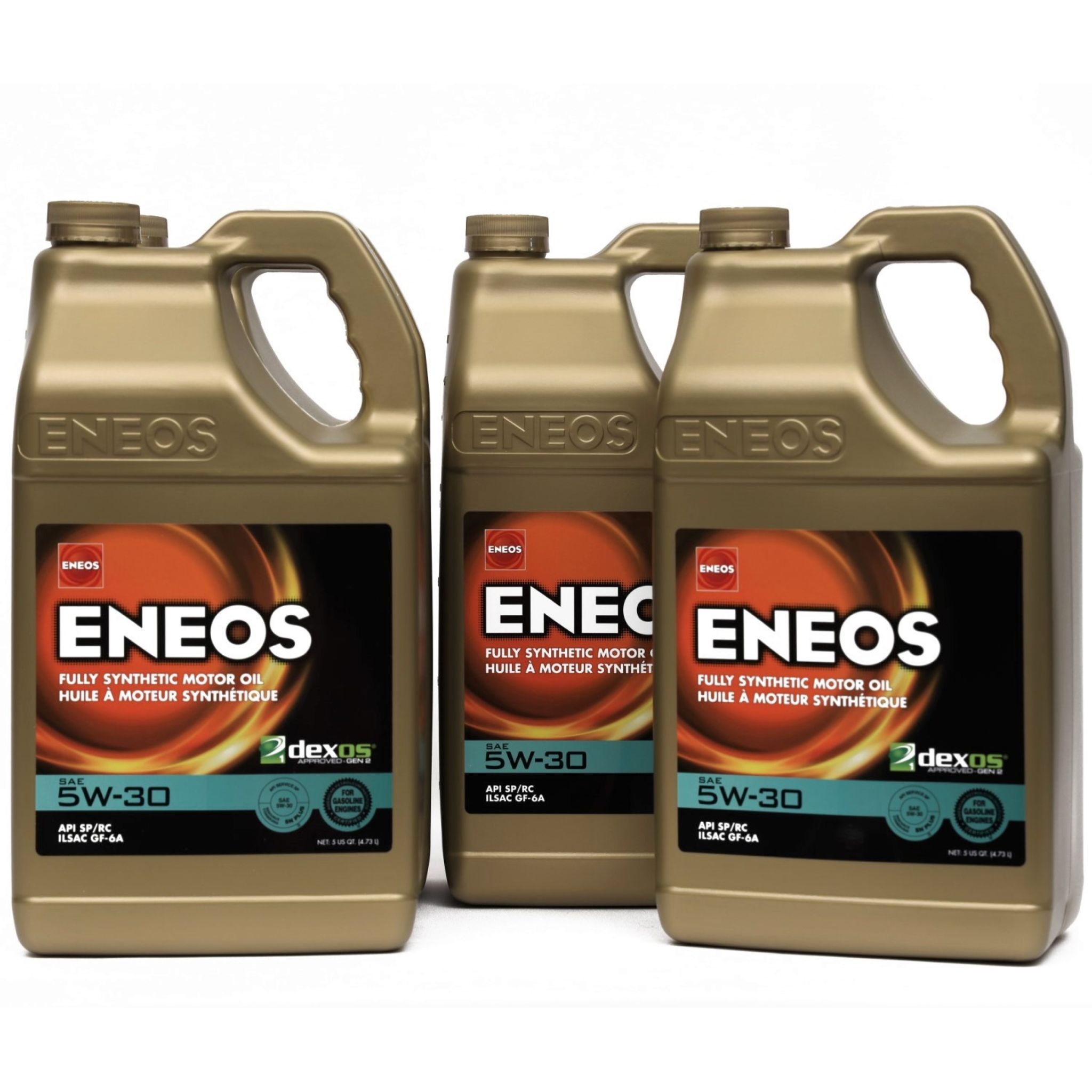 ENEOS 5W-30 Fully Synthetic Motor Oil is 100% fully synthetic motor oil blended from high-performance hydro-refined base oils and an optimized additive blend to provide enhanced piston cleanliness, reduced engine sludge, and improved turbocharger protection. It provides outstanding oxidation stability at high temperatures. Meets API SP and ILSAC GF-6A standards, and is dexos1 Gen3 approved, providing broad compatibility with domestic and import vehicles. Formulation properties provide enhanced protection for turbochargers. Additionally, ENEOS 5W-30 provides outstanding oxidation stability at high temperatures.