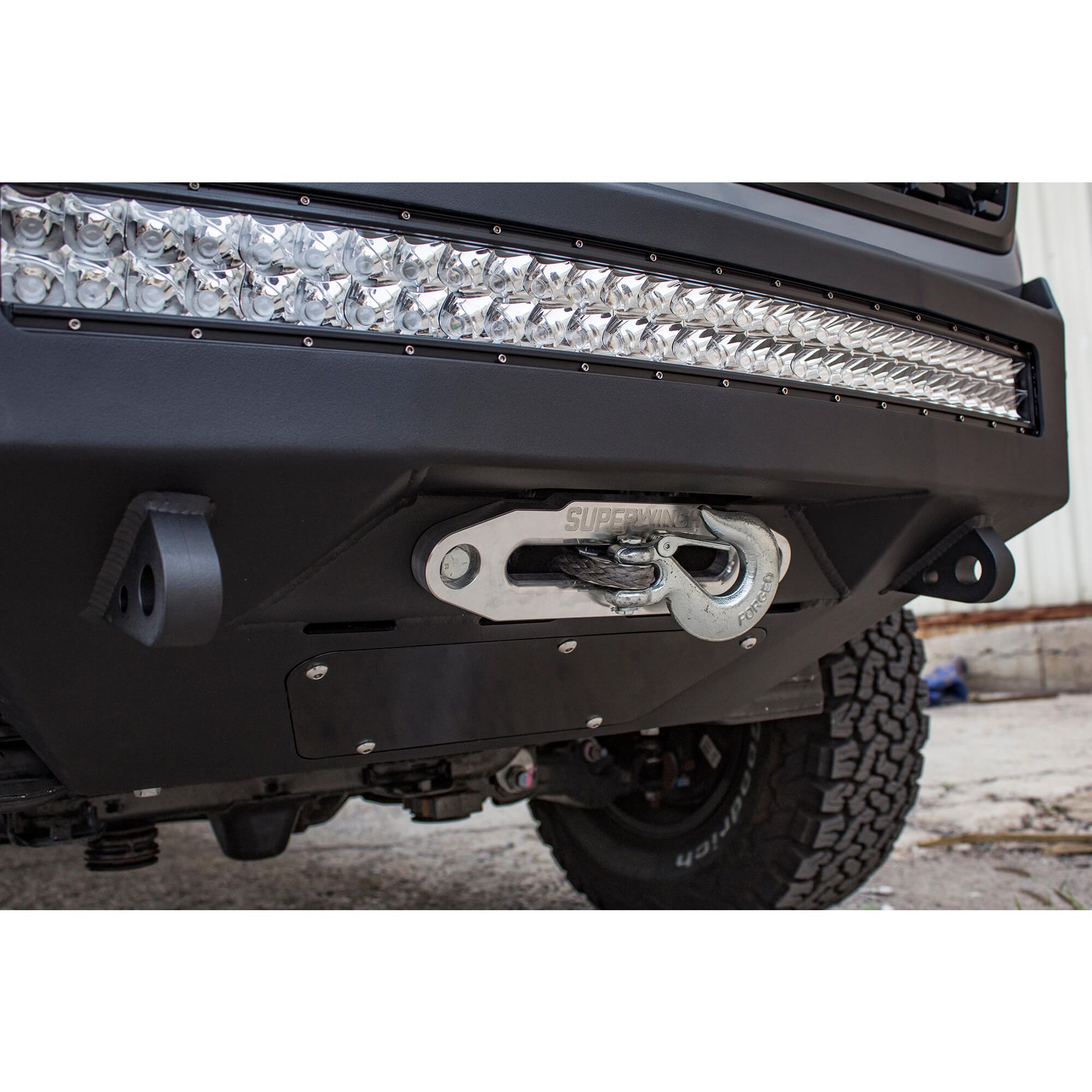 The HoneyBadger front bumper is one of our toughest bumpers yet. Made with 1/8" external steel plating and 3/16" internal structure plating. And removable 1/8" aluminum accent panels. With an aggressive style the HoneyBadger front bumper for the Toyota Tacoma gives your truck a tough look, while providing superior protection to your front end components. Reinforced clevis mounts made from 1" steel are designed to accommodate a 3/4" D-ring. Our universal light mount system in the center of the bumper allows for up to 8 Duallys or a 30" Straight or Radius LED bar to be mounted. Mix and match any brand and size lights with the universal light kit to create the perfect lighting combination for your needs. Additional lighting options are available behind the side accent panels, accepting a Rigid Industries 10" LED on each side.