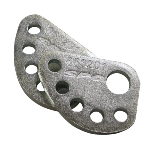 Some users find that once they remove the plastic retainer from the original equipment cam on GM trucks, they can't get adjustment to hold. These lock plates are designed to provide a mechanical lock for the cam bolt to the guide pin. Simply dial in your change with the original equipment cam or SPC's replacement kit #86376 and then replace the nut side cam with the lock plate. Use part number 86326 HD GM alignment pins to replace the often abused OE pins. This kit is designed for GM 2500/3500/4500 HD trucks and the 2015 & up Chevy Colorado.