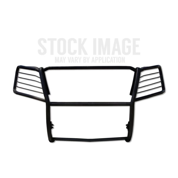 Heavy duty one piece construction, pre-drilled holes for auxiliary lights, protective rubber strips, frame mounted upper brackets, 1 1/2" tubing and removable headlight guards. Black semi-gloss powdercoat finish with a 3 year warranty