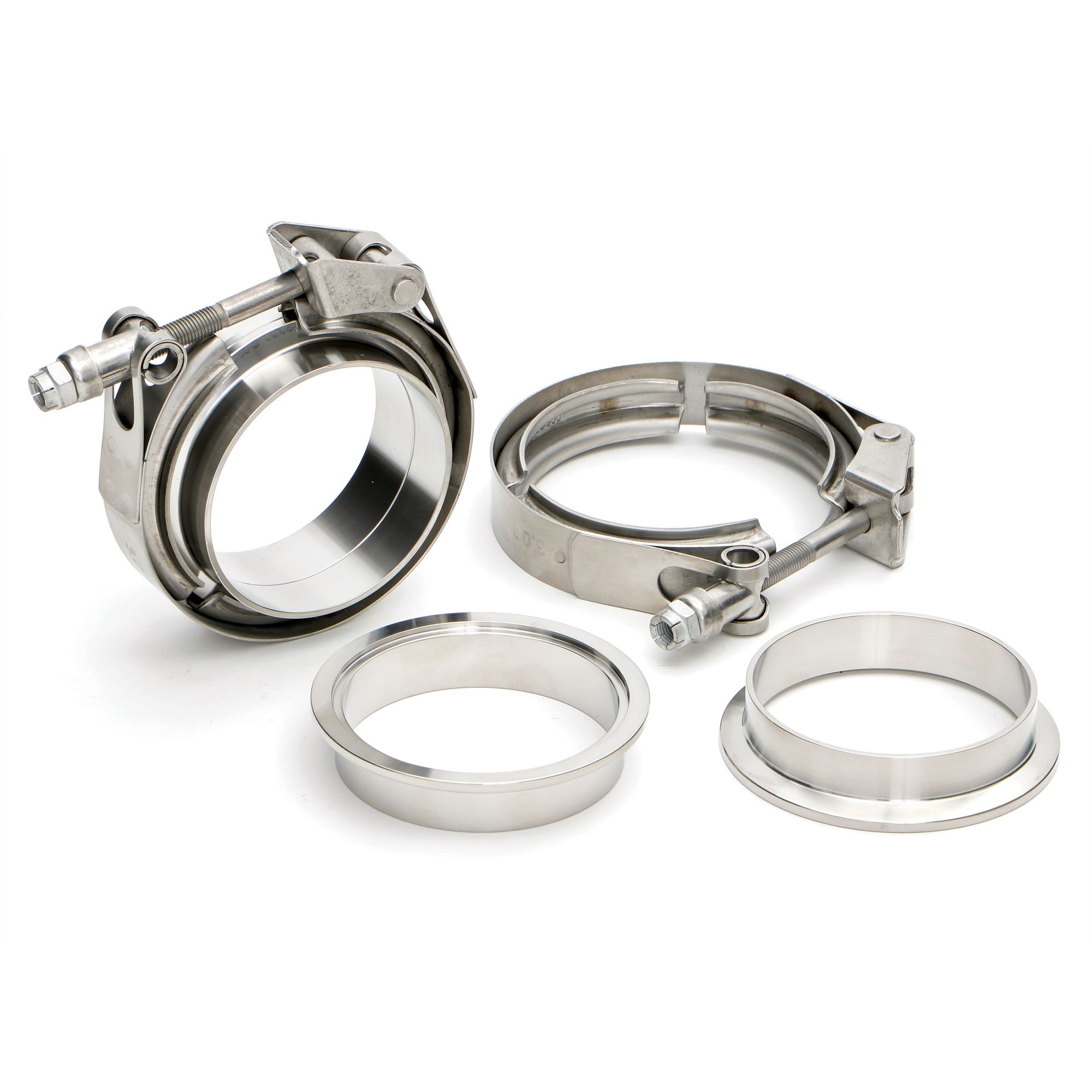 Convert any standard 3-bolt gasket, ball & socket, or factory-style exhaust connection to a state-of-the-art v-band connection. V-band exhaust connectors provide a strong, leak-free connection between exhaust segments, or for connecting your exhaust system to any set of headers. The interlocking, machined flanges create a clean, leak-free seal. These kits are provided with Hedman's stainless steel Turbocharger headers, but can be used to convert any set of Hedmans to a v-band connection. Sold in pairs.