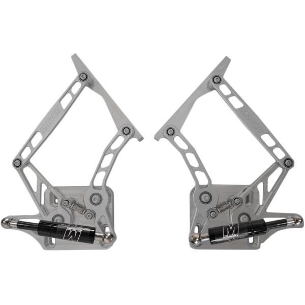 Hinges have 6 axis adjustablity. CAM button technology allows for easy side to side or angle adjustments of the hood. Micro adjustment utilizes internal set screws in the mounting block to keep it in place when the bolts are loosened, allowing for simple height changes. Stainless steel adjustment rods allow for rear height adjustments in small increments to achive perfect hood gap. Stainless steel gas struts are force matched to hood type for ease in opening and closing of the hood. Increased hood opening area allows for easier maintenance or the ability to showcase more of the engine compartment.