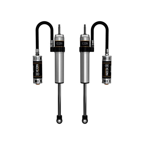 ICON 2.5 Aluminum Series shocks are designed and built to give your vehicle outstanding performance off-road and a smooth ride on the street. These shocks are configured specifically for each application in both length and damping tune. Like all ICON'S Shock Absorbers, 2.5 Aluminum Series shocks are 100% rebuildable and 100% revalveable. For piggyback and specific remote reservoir applications, ICON'S unique use of a 6061 billet aluminum manifold a few inches below the top cap of the shock creates an internal Bump Zone that when used creates an additional 20% of damping force. This additional force helps prevent harsh bottom outs and controls the suspension when compressing at high velocity. If you are looking for a more user defined tune, consider looking into the Compression Damping Control Valve (CDCV) or the Omega Series bypass shocks.