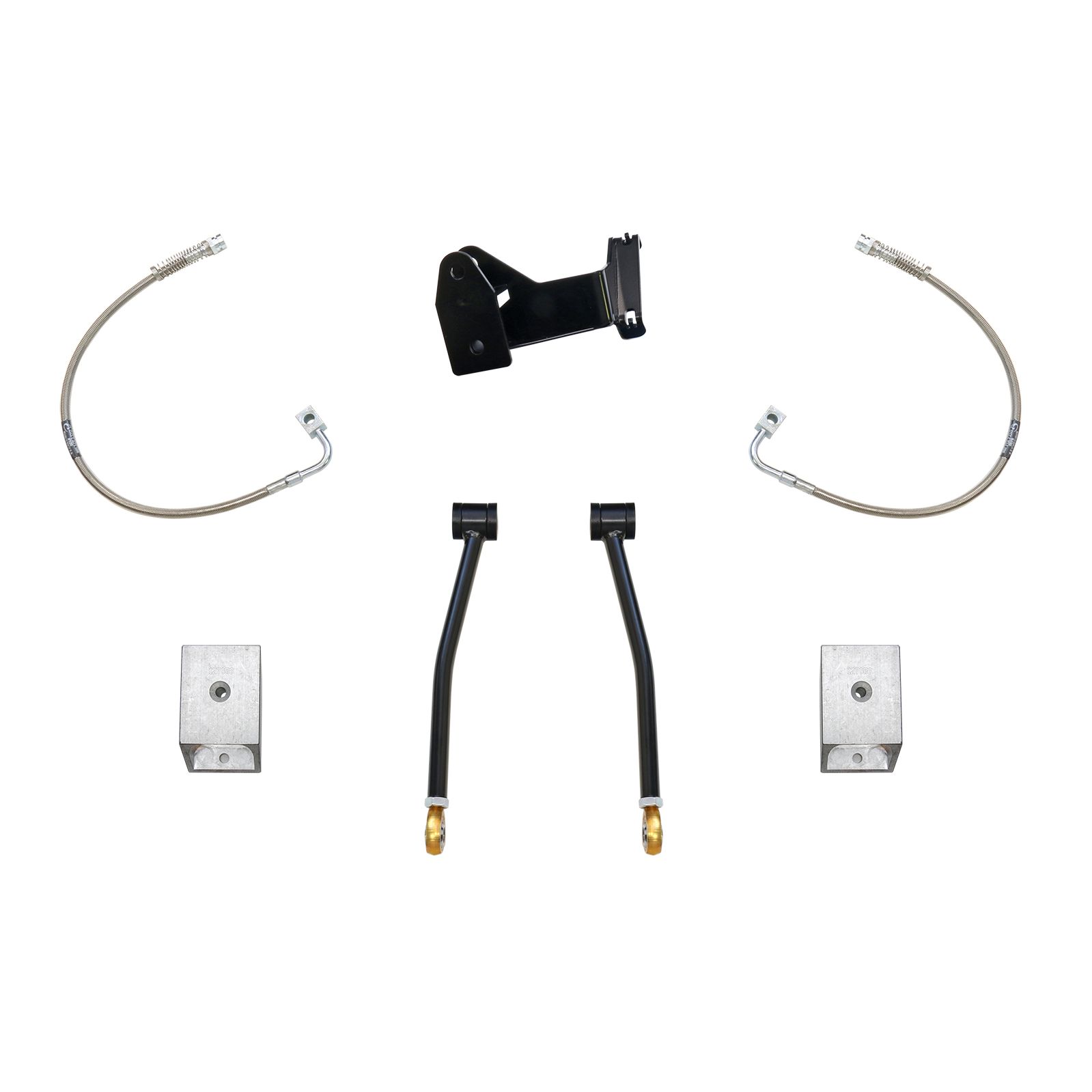 The ICON Vehicle Dynamics 2007-2018 Jeep Wrangler JK Rear Box kit contains many of the miscellaneous parts required to lift the rear of the vehicle when using and ICON 4.5” lift suspension system. This kit includes fabricated rear track bar drop bracket and sway bar links, CNC machined aluminum bump stops spacers, and stainless-steel braided brake lines along with all required mounting hardware.