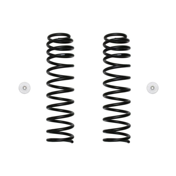 The ICON Vehicle Dynamics 2018-2023 Jeep Wrangler JL/2020-2023 Jeep Gladiator front coil springs are designed for drivers demanding the ultimate in performance and ride quality, while allowing for increased wheel travel (when used with ICON shocks) and the fitment of larger tires. The ICON coil springs provide 2.5" of lift height on Wrangler JL (based on a factory equipped 4-door Rubicon) or 2" of front lift on Gladiator JT and feature a dual rate design. The dual rate design allows for a softer initial rate for superb on road comfort and a firmer secondary rate that increases during compression for excellent bottoming resistance and off-road performance. Like all ICON coil springs, they feature a lifetime guarantee against sagging/breakage to produce confidence in knowing that you have the best suspension products available for the 2018-2023 Jeep JL Wrangler or 2020-2023 Jeep Gladiator.