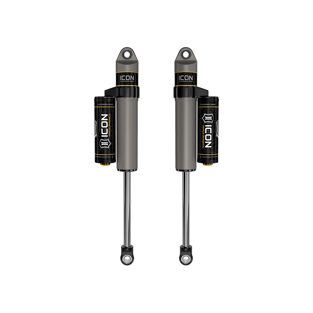 ICON Vehicle Specific (V.S.) 2.5 Aluminum Series shocks are designed and built to give your vehicle outstanding performance off-road and a smooth ride on the street. These shocks are configured specifically for each application in both length and damping tune. Like all ICON'S Shock Absorbers, V.S. 2.5 Aluminum Series shocks are 100% rebuildable and 100% revalveable. For piggyback and specific remote reservoir applications, ICON'S unique use of a 6061 billet aluminum manifold a few inches below the top cap of the shock creates an internal Bump Zone that when used creates an additional 20% of damping force. This additional force helps prevent harsh bottom outs and controls the suspension when compressing at high velocity. If you are looking for a more user defined tune, consider looking into the Compression Damping Control Valve (CDCV) shocks.