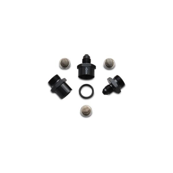 Vibrants unique, flow directional Turbo Oil Feed Inline Filters can be configured with your choice of Male AN Flare inlet/outlet or with a Female AN inlet and Male AN Flare outlet. Each Oil Filter kit also includes interchangeable 30, 80 and 150 micron filter elements, making them suitable for use with many different varieties of oil.