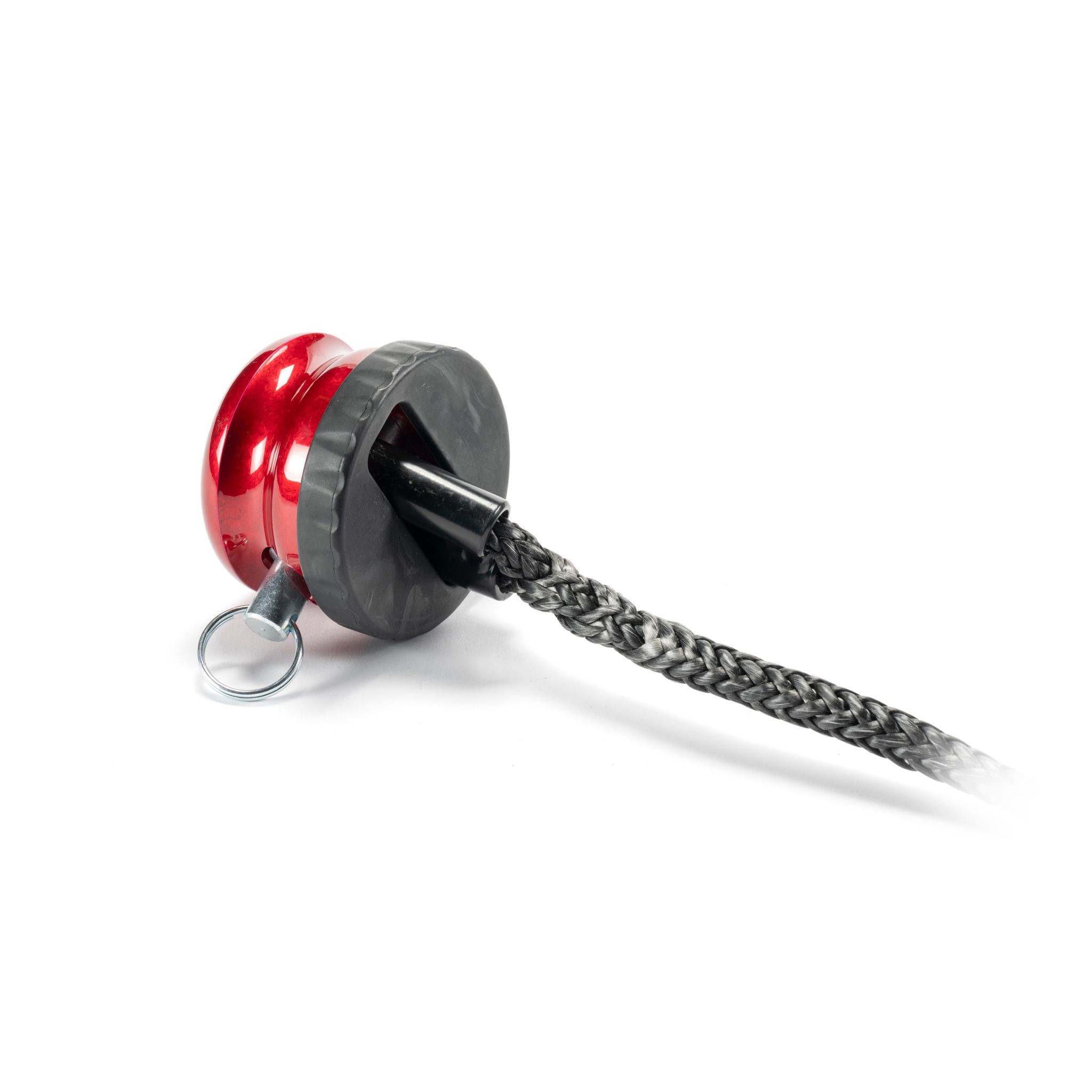 The Loopguard is a protective guard for cable and synthetic winch rope eyes/loops featuring a quick release zinc plated pin for easy loop access. Allows the user to secure the end of the winch rope when not in use but utilize a complete ?soft? rigging setup. Provides rope tension when cinched against fairleads and protects loops from impact, abrasion, and damaging UV light. Billet aluminum construction for impact durability and integral rubber guard for fairlead cushion and surface protection. Finished in a durable Mil-Spec hard gray anodized coating. Made in the USA