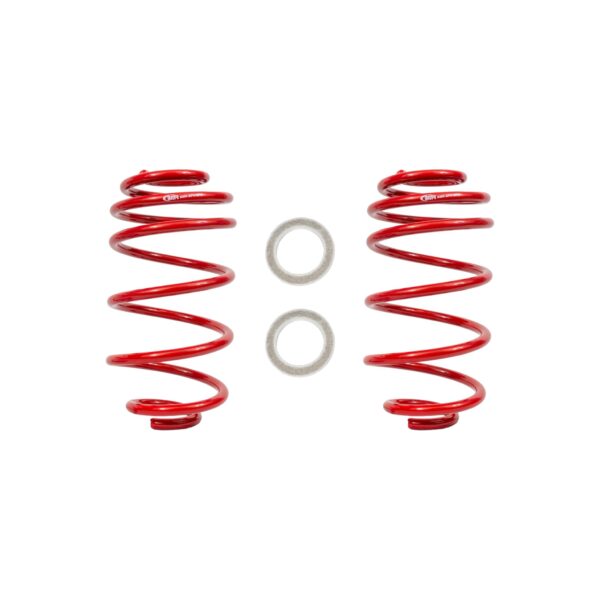 There is nothing like the aggressive look of a car with the right stance! Over time, stock springs sag, get rusty, and simply wear out. BMR Suspension believes the right springs go beyond looks?your GM A-body needs to perform, too! All BMR springs are manufactured from chrome silicon high-tensile spring wire, and are cold wound on a CNC coiling machine. The CNC coiling head can adjust the spring diameter in real time to ensure that every spring is exactly the same. This guarantees that your right spring matches your left spring. Every BMR spring is compressed solid at the factory, not once, but twice. This gives the spring its permanent set, and guarantees no sag. BMR springs are stress-relieved at 750 degrees F, ensuring most stresses induced during the winding process are eliminated. All springs are then shot-peened to eliminate residual surface stresses. Many spring manufacturers skip this step, but BMR insists on this operation as part of our spring manufacturing process. Every spring is computer tested as the last step?every spring, not just a sample from each batch. Each spring is loaded in the spring tester at the factory, then compressed and the CNC load cell measures the force for a variety of spring lengths. This allows BMR to offer a LIFETIME WARRANTY against spring sag. Blending aesthetics and performance, BMR has designed the SP015 for the street performance crowd who want to use their cars in a variety of application. These springs will drop the rear end of your 1967-1972 GM A-body 2-inch, and feature a fine-tuned spring rate to give you great handling and a smooth ride. The spring rate offers plenty of support, keeping the body flat and level in the corners, while remaining soft enough for a comfortable ride on any road. When performance and looks are a must, rely on BMR Suspension! BMR Suspensions SP015 lowering springs are available in red powdercoat for long-lasting good looks. Installation time is about 2-3 hours. Proudly made in the U.S.A.