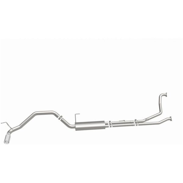 The MagnaFlow 2007-2024 Nissan TITAN Street Series Cat-Back Performance Exhaust System brings out the personality of your 5.6L 2007-2024 Nissan TITAN with our signature resonant, powerful engine tone and dyno-proven performance. Thanks to its fast-flowing, mandrel bent 3in. main piping and 1 Straight-Through mufflers ending in a Single Passenger Side Rear exit with 4in. Polished Welded-On Double Wall Angle Cut Rolled Edge tips, this Nissan TITAN exhaust kit has the performance chops to match its sporty sound and appearance. Upgrade your ride to the next level with an exhaust that has the pipes to put other Nissan TITAN's to shame. With this system your vehicle will be producing Moderate exterior and Mild interior sound levels while leaving other cars and trucks feeling envious at every stoplight. Exhaust kit 19421 features a cat-back layout that replaces your ride's stock exhaust components from near the catalytic converter on back. Extensive 3D scanning during development has resulted in a direct-fit design that you can easily install yourself. 19421 is produced using CNC precision robotic manufacturing techniques and is backed by MagnaFlow's 1-year limited finish warranty and limited lifetime construction warranty.