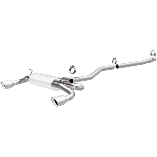 The MagnaFlow 2012-2019 Land Rover Range Rover Evoque Touring Series Cat-Back Performance Exhaust System is the perfect partner for your 2.0L 2012-2019 Land Rover Range Rover Evoque to take on a grand tour or a weekend cruise thanks to the powerful, resonant exhaust note and dyno-proven performance it brings to the table. This durable, corrosion resistant stainless steel exhaust kit is engineered to conquer the miles with ease while enhancing your driving experience with Moderate exterior and Mild interior sound levels generated through its fast-flowing, mandrel bent 2.5in. main piping and 1 Straight-Through muffler that terminate in a Dual Split Rear exit with 4in. Polished Welded-On Double Wall Angle Cut Folded Edge tips. 15065 features a cat-back layout design to replace your import's stock exhaust components from the catalytic converter on back. This Land Rover Range Rover Evoque exhaust system is compatible with 2012-2019 engines. The use of extensive 3D scans made during the development process has resulted in an easy-to-install, direct-fit design that fits your Land Rover Range Rover Evoque like a glove. 15065 is produced using CNC precision robotic manufacturing techniques and is backed by MagnaFlow's limited lifetime construction warranty.