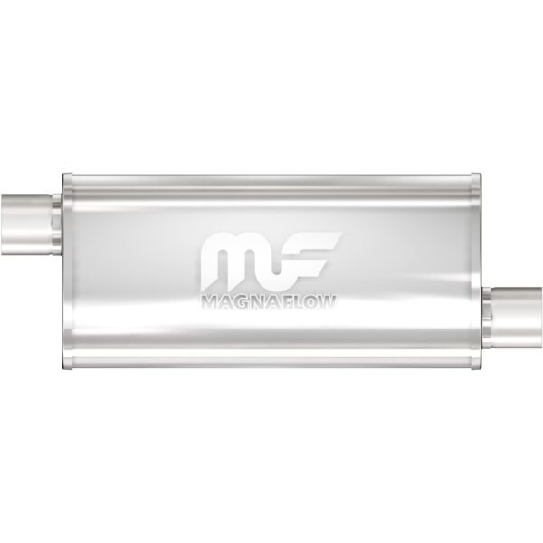 The MagnaFlow 5 X 8in. Oval Straight-Through Performance Exhaust Muffler 14263 brings our signature sound and dyno-proven performance to your ride with a free-flowing straight-through perforated stainless steel core wrapped in stainless steel mesh and acoustic fiber fill, and a weight-optimized, reversible 2.5/2.5in. diameter inlet/outlet Straight-Through layout. Muffler 14263s 5x8x18in. oval-shaped body features a premium, brushed finish for an elevated aesthetic that matches the enhanced exhaust note and performance that this muffler brings to your ride. The universal design allows for flexible placement of 14263 within your exhaust system to meet the specific spacing requirements of your vehicle, although professional installation is highly recommended. 14263 is made of durable, corrosion resistant stainless steel and produced using cutting-edge CNC precision robotic manufacturing techniques, all backed by MagnaFlow's limited lifetime construction warranty.