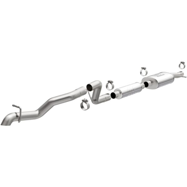 The MagnaFlow JK Jeep Wrangler Overland Series Cat-Back Performance Exhaust System #19539 will inject your Jeep Wrangler JK Unlimited (2012-2018) with MagnaFlow’s deep signature sound and dyno-proven performance. MagnaFlow exhaust kit #19539 is weight optimized for improved utility and features a single straight-through muffler with 2.5” mandrel bent main piping that fits closer to the undercarriage of the vehicle compared to the stock configuration. This combined with a no-tip, high clearance driver side rear exit greatly enhances your JK Jeep Wrangler’s ground clearance and departure angles. The exhaust system was designed to be compatible with the most popular bolt-on aftermarket modifications. Each system incorporates MagnaFlow’s No Drone Technology, which mitigates interior noise by cancelling out the natural droning frequencies produced by your JK Jeep Wrangler at cruising speeds while retaining the character of your engine’s exhaust note. CNC precision robotic manufacturing techniques enable perfect fitment and allow for hassle-free bolt-on installation. MagnaFlow #19539 is made entirely of durable stainless steel and backed by MagnaFlow’s limited lifetime construction warranty.
