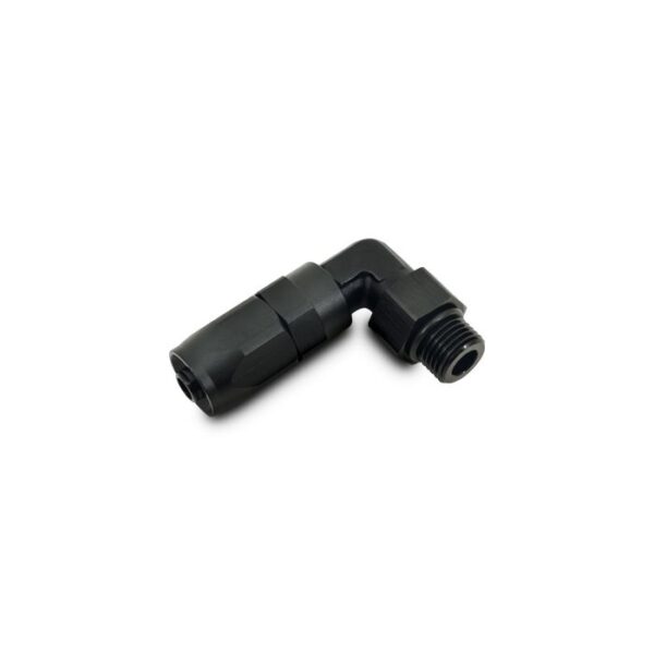 Vibrant Performance swivel-style Tight Radius Forged Hose End Fittings are lightweight and constructed entirely from 6061 Aluminum Alloy. Our Tight Radius Forged Hose End Fittings deliver quality, reliability, smooth flow, ease of assembly and the comfort of an anti-leak seal. All Vibrant Performance hose end fittings are available in anodized black only. Includes an O-Ring seal.