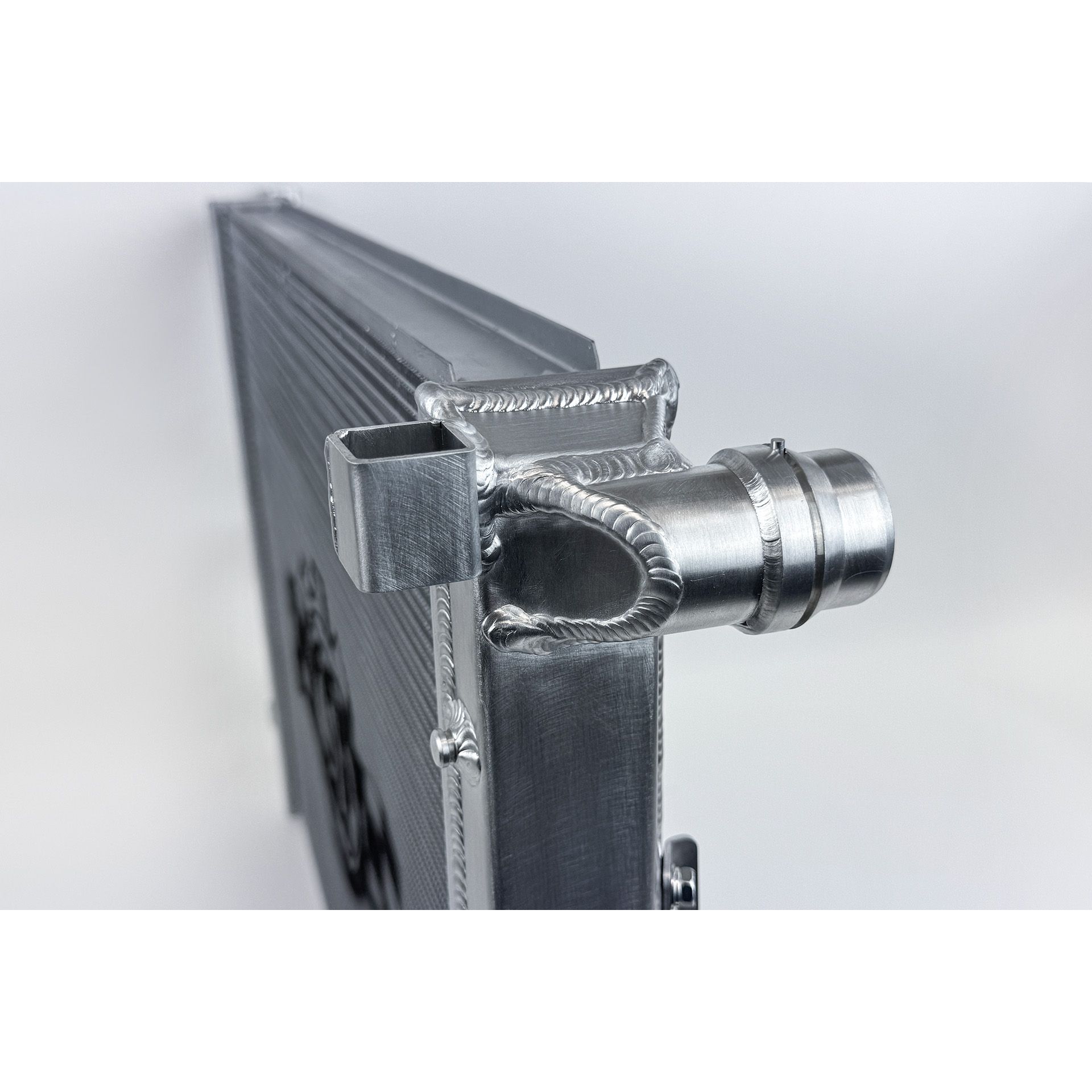 The main testing was performed at Loveland Pass just outside of Denver with two similarly setup 955 Cayennes. Similar miles, same size tires, and both equipped with winches, lights, and other exterior accessories. One was equipped with the CSF Radiator, the other with the OE Radiator. Testing showed a steady 18-20 deg F differential between the CSF and OE Radiator equipped vehicles. Both started out at 186.8 deg F (86 deg C) with the OE Radiator ending at 212 deg F (100 deg C) and the CSF Radiator ending at 194 deg F (90 deg C). These are very impressive real world results on the earlier prototype model.
